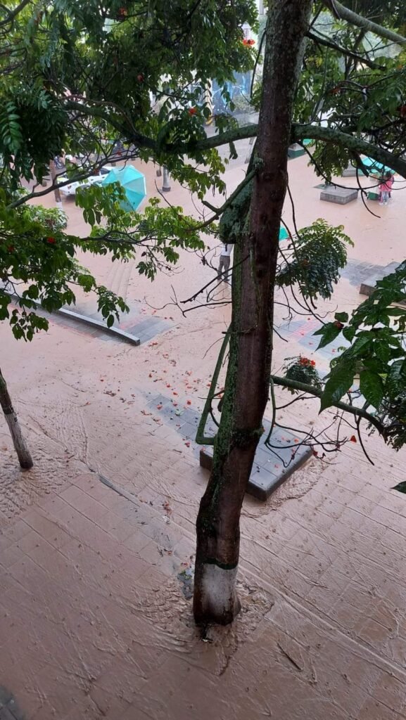 «A EstaHora reportamos creciente súbita y avenida torrencial en la Quebrada la Parroquia de #Fusagasugá. Se activan organismos de socorro y toda la Gestión del riesgo de desastres del municipio»