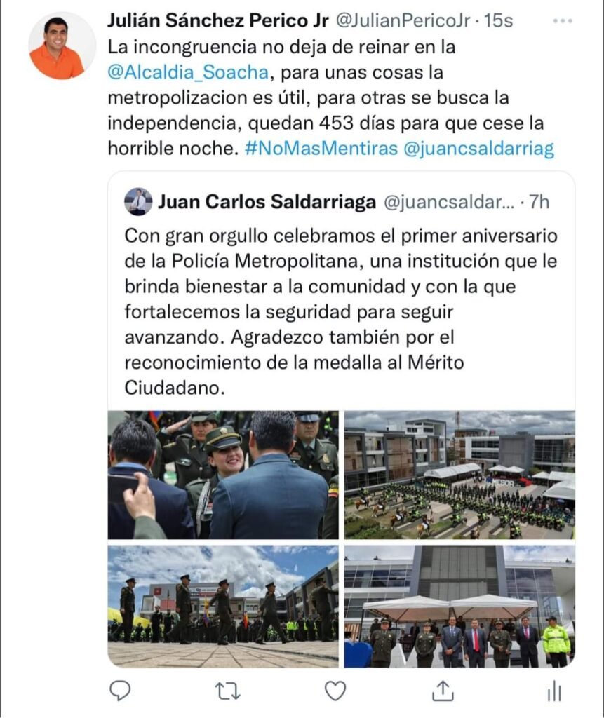 Julián Perico Diputado en el departamento de Cundinamarca, arremetió contra el Alcalde de Soacha por medio de las redes sociales.
