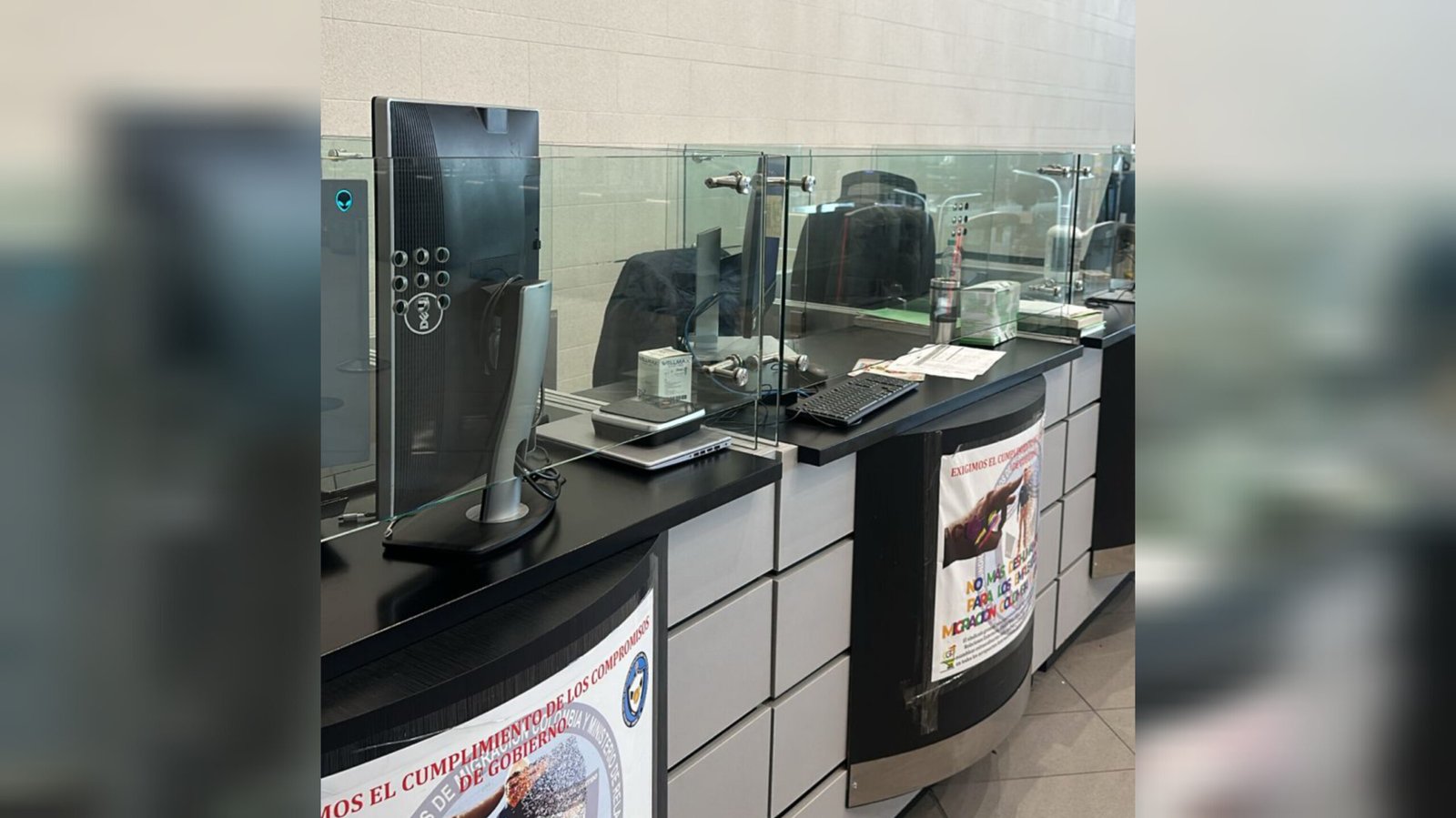 En las ventanillas de Migración, hay letreros del Sindicato pidiéndole al Gobierno el cumplimento de las garantías para los trabajadores. Uno de ellos contó que “los están intimidando”.